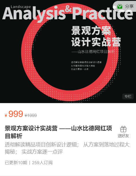 为此景观周联合景观行业网红项目频出、极具创新力的企业:山水比德。经过不断打磨、内部试讲多次。为同行开设了具有针对性的系列实战课程:景观方案设计实战营——山水比德网红项目解析