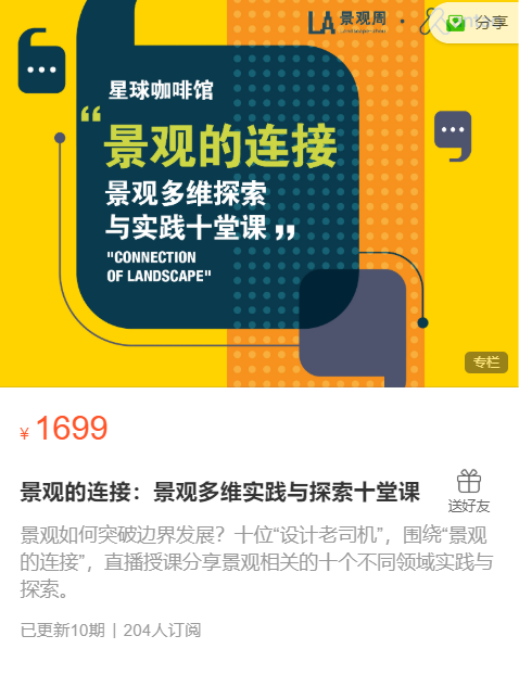 景观周邀请到安道及其子品牌的十位“设计老司机”,将围绕“景观的连接”直播授课分享景观相关的十个领域实践与探索。![]()